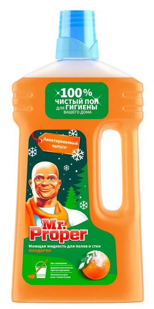 Mr.Proper отмывает полы и стены за меньшее время и с меньшими усилиями*, а его безвредная рН формула подходит для уборки различных поверхностей, включая лакированный паркет и ламинат. (* по сравнению со стиральными порошками, потому что не нужно смывать).